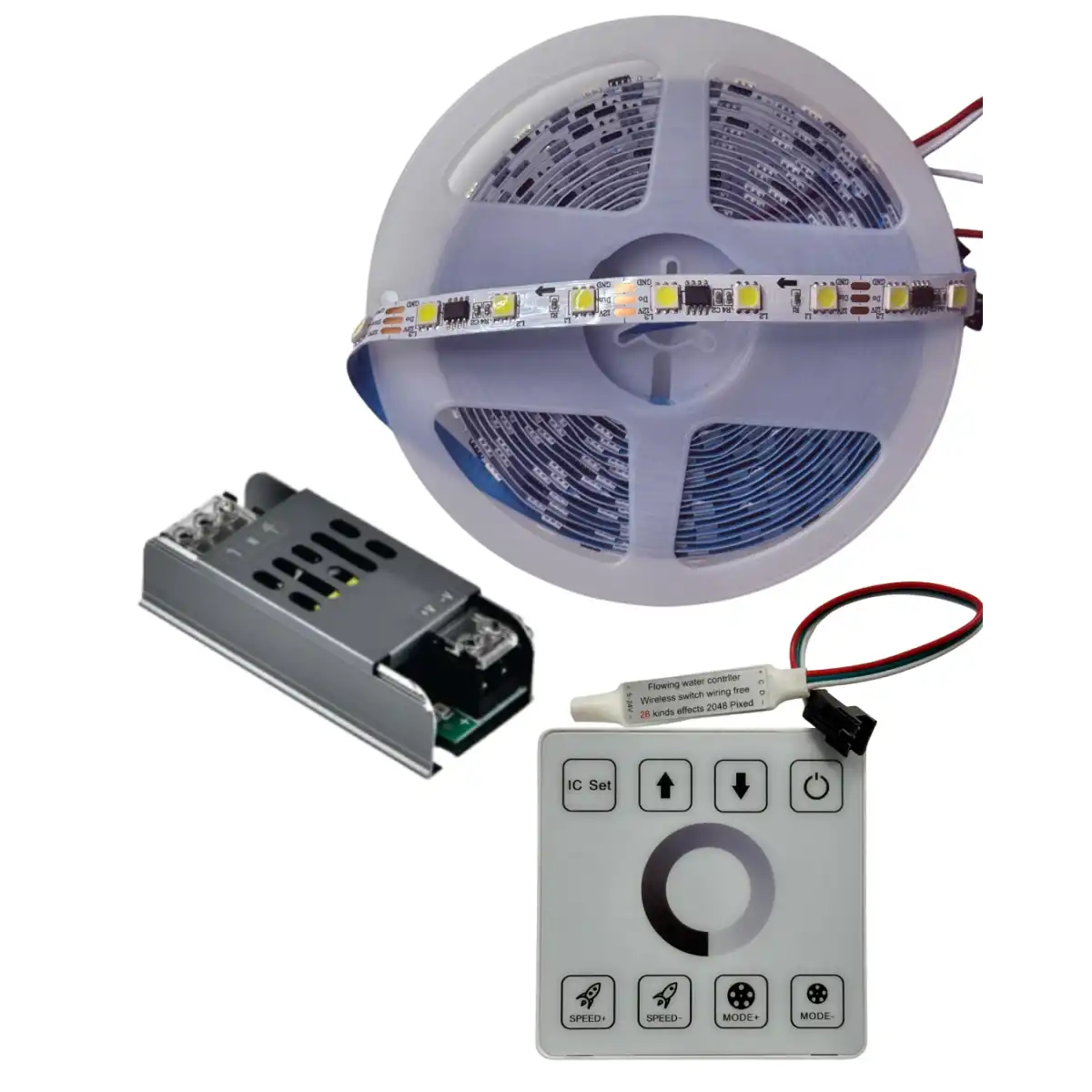 10 Metre 12 Volt 60 Pixel Led 8 mm 6500K Beyaz İç Mekan Led Dokunmatik Duvar Kontrol Ünitesi 10A Trafo Set
