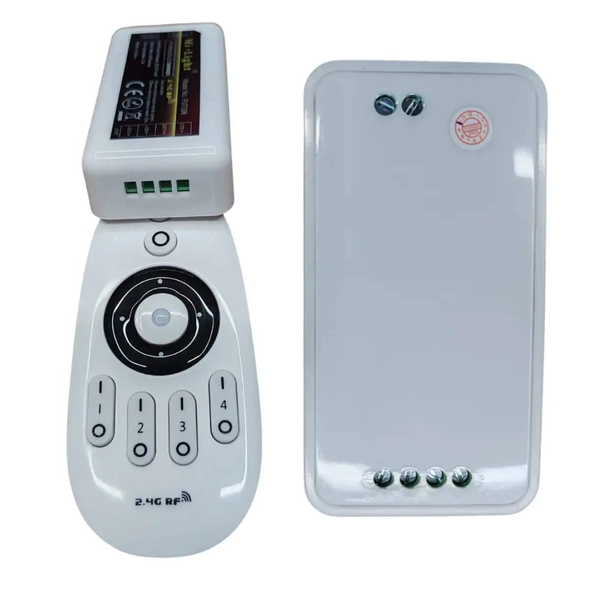 Bu Mi-Light dört bölgeli LED radyo uzaktan kumandası, tek renkli veya CCT (çoklu beyaz) aydınlatma için kullanılabilir. Verici, radyo alıcısı kullanılarak her bölgenin ayrı ayrı kontrol edilmesini sağlar. Çok fonksiyonlu uzaktan kumanda, mevcut düğmelerle parlaklığı ve renk sıcaklığını değiştirmenize olanak tanır.