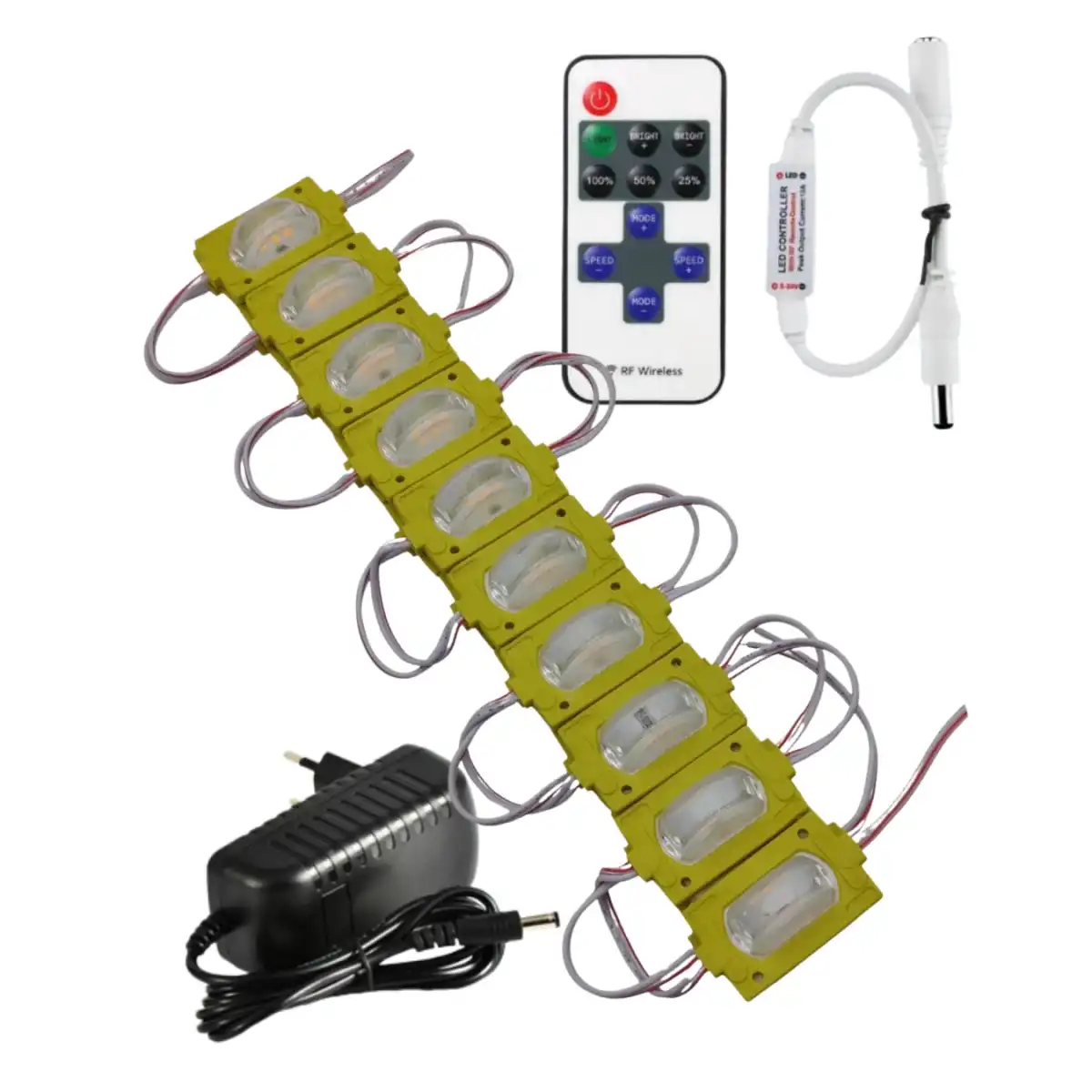 20 Adet 12 Volt 1.2 Watt Dar Açılı Tek Lensli Amber Led Modül 12A Tek Renk RF Dimmer 2A Priz Tipi Adaptör Set