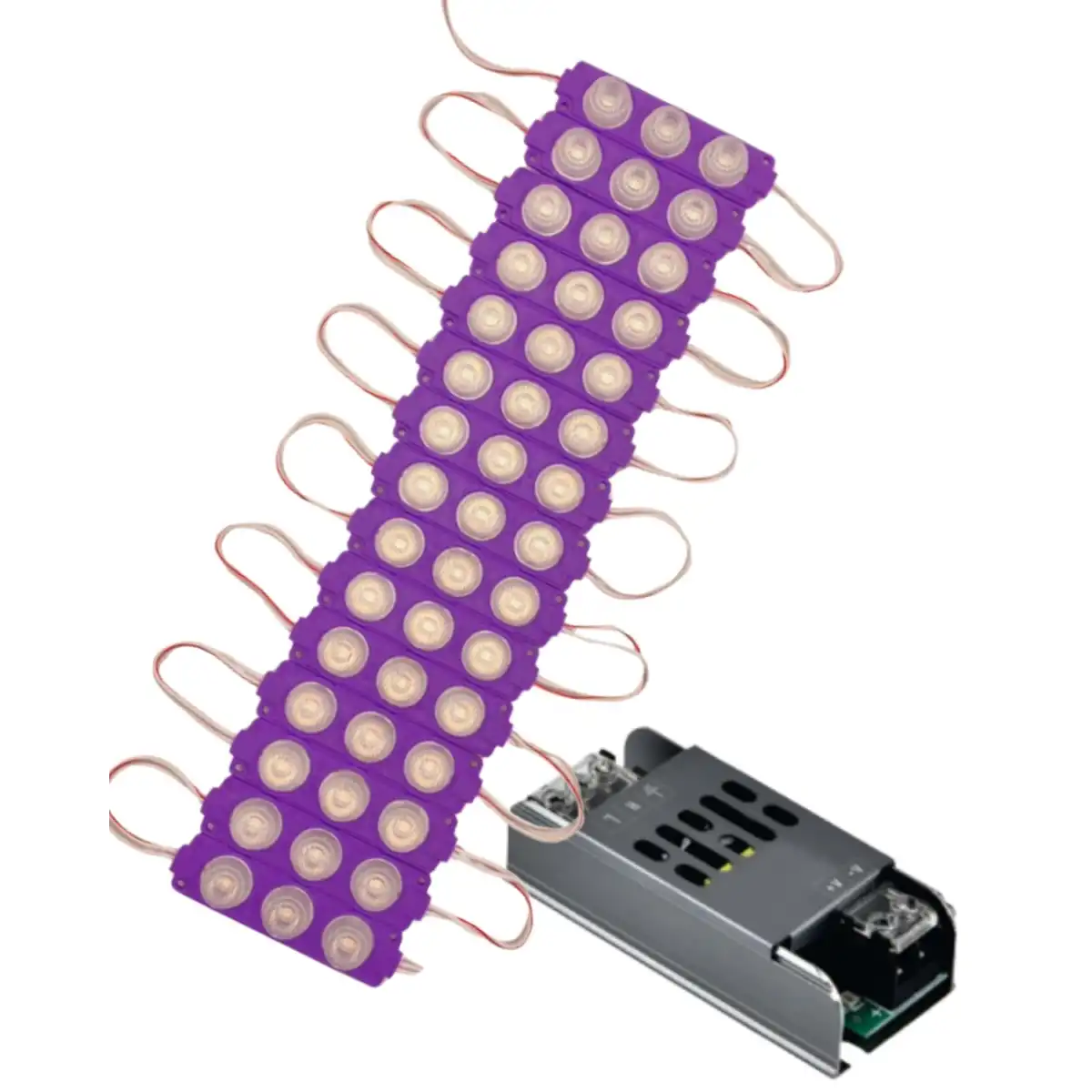 20 Adet 12 Volt 3 Watt 3 Lensli Mor 3030 SMD Led Modül 5A Slim Trafo Set