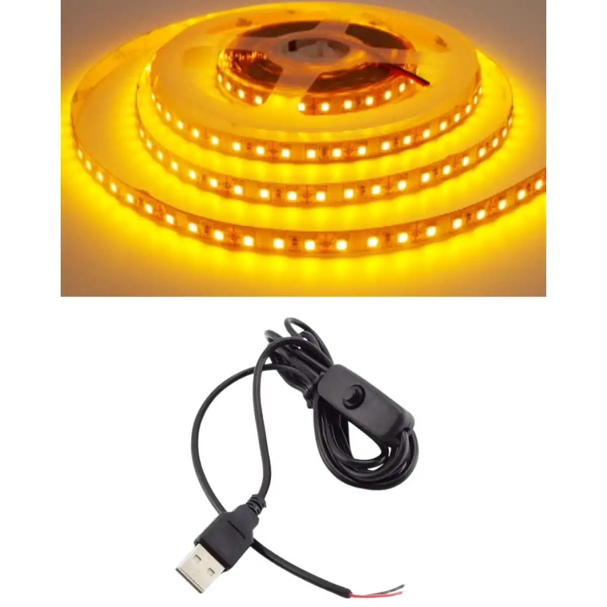 5 Metre 5 Volt 2835 SMD Amber İç Mekan 60 Ledli Şerit USB li Siyah Güç Kablosu Set