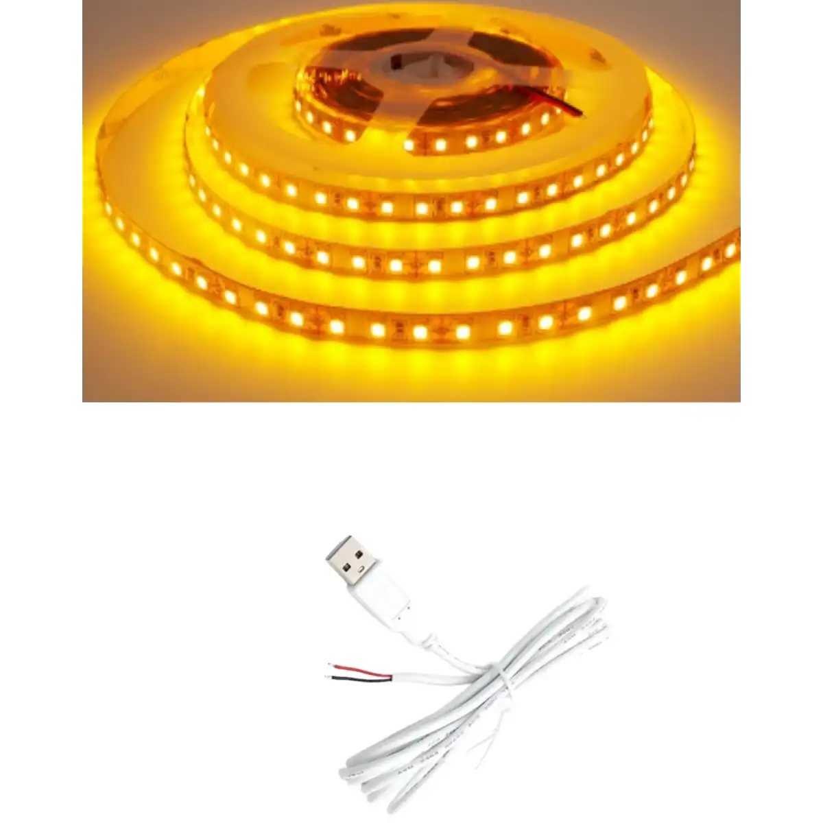 5 Metre 5 Volt 2835 SMD Amber İç Mekan 60 Ledli Şerit USB li Siyah Güç Kablosu Set