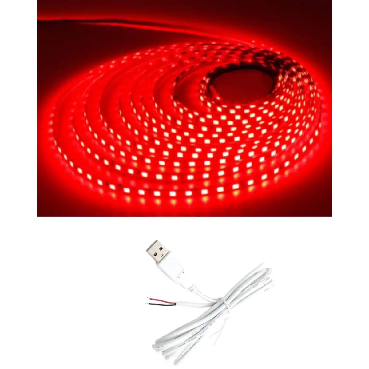 5 Metre 5 Volt 2835 SMD Kırmızı İç Mekan 60 Ledli Şerit USB li Siyah Güç Kablosu Set