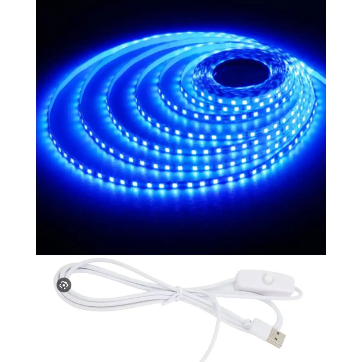 5 Metre 5 Volt 2835 SMD Mavi İç Mekan 60 Ledli Şerit USB li Siyah Güç Kablosu Set